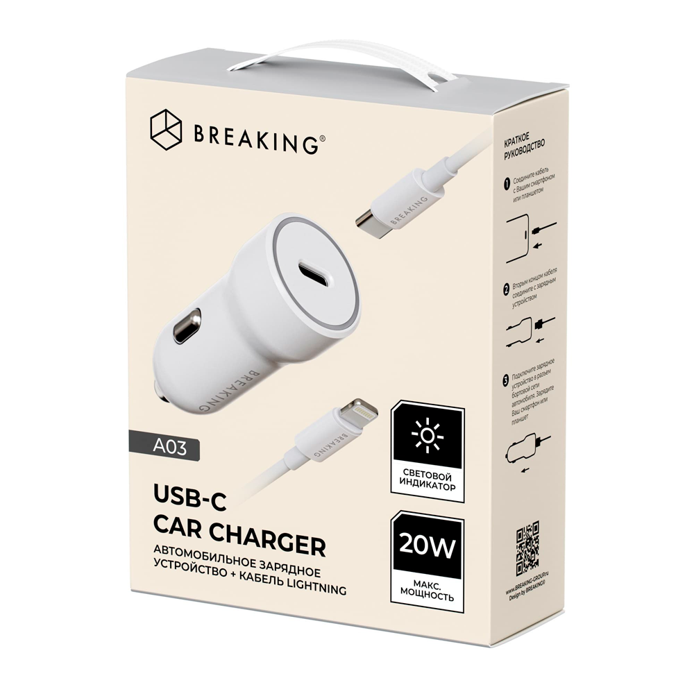 Breaking АЗУ A03 20W Type-C + кабель Lightning (белый) 23181 купить в Махачкале