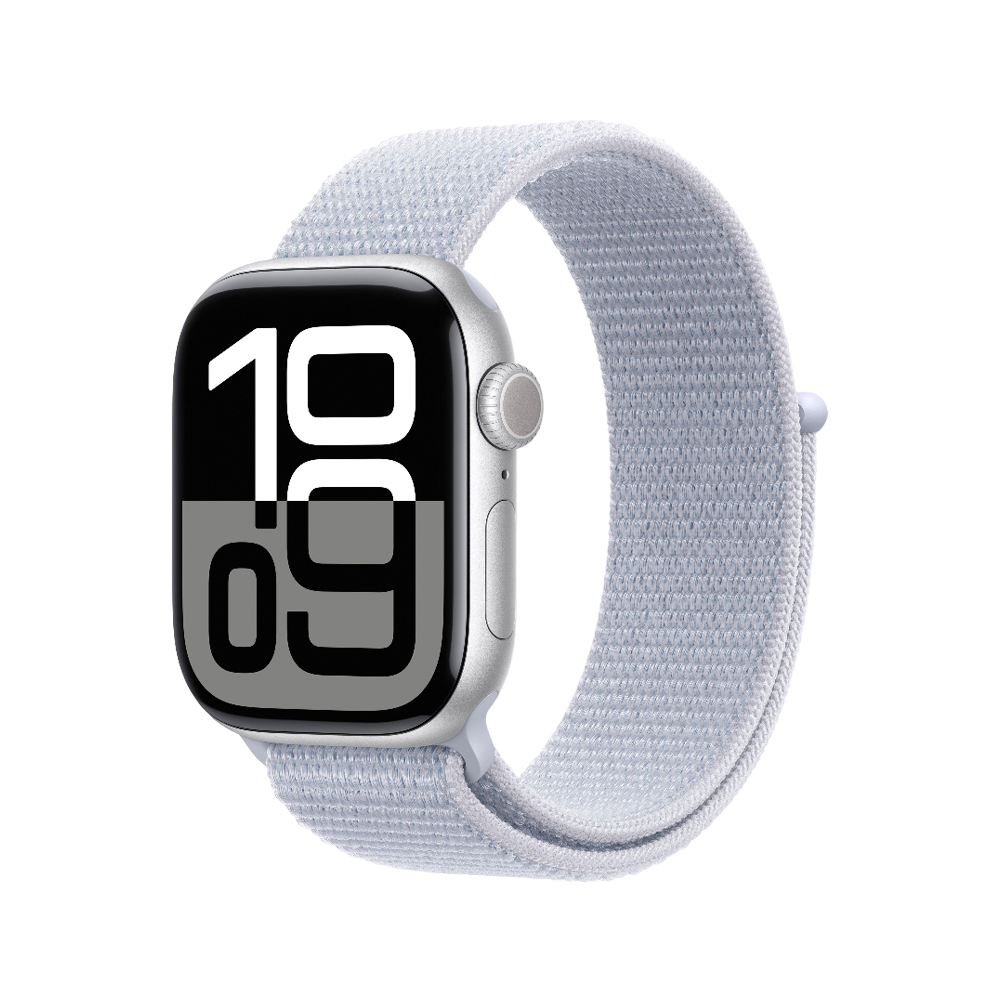 Apple Watch 10 42mm, алюминий, серебристый, нейлоновый голубой ремешок купить в Махачкале